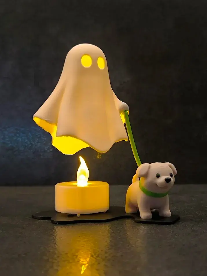 Cute Ghost Candle Holder with Dog | Aesthetic Halloween Desk Decor